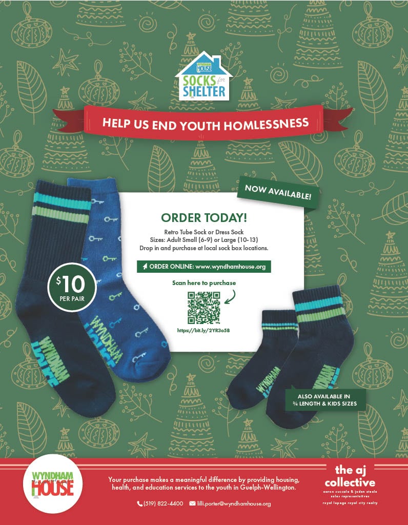 If you are interested in supporting the Socks for Shelter Campaign through more than just purchasing socks, consider partnering with us to sell our socks at your establishment. We will provide you with all the necessary resources and information, if you are interested, please reach out to our Manager of Communications and Community Engagement lilli.porter@wyndhamhouse.org for more information.